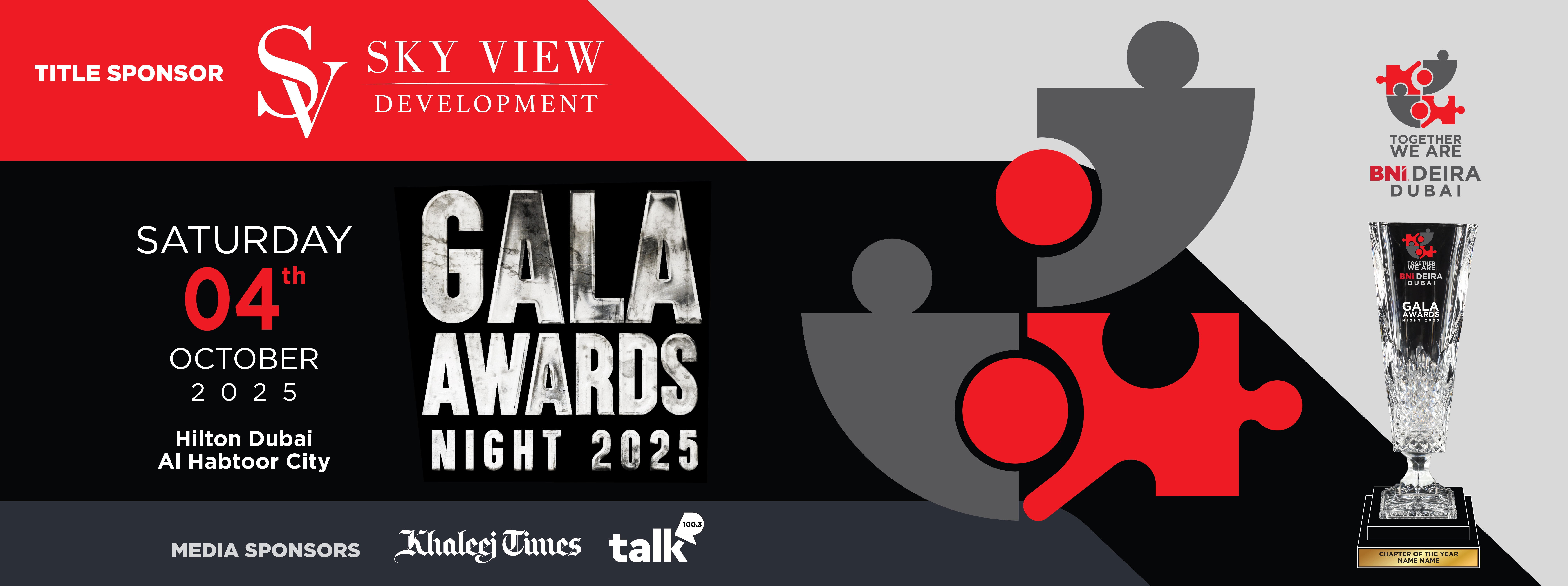 To celebrate the spirit of collaboration, unity and success, BNI Deira Dubai cordially invites you to an exclusive Gala Dinner